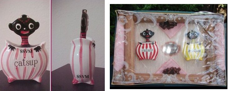 Black Americana Pixies - Now this one you don't see often. Only the Catsup and Mustard were made in this line. They were sold in a set with napkins and placemats. The pixie head is