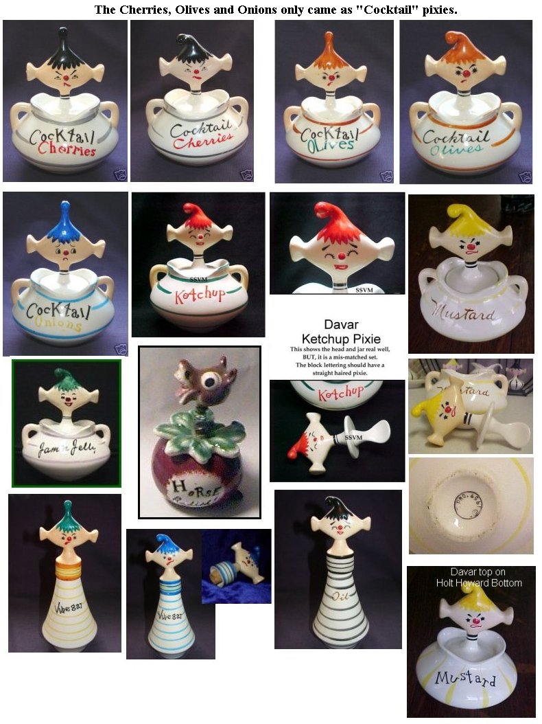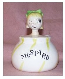 flaws, they are still really cute and highly collectable. Davar also made a cute horseradish nodder condiment holder, and a garlic condiment that are quite rare.